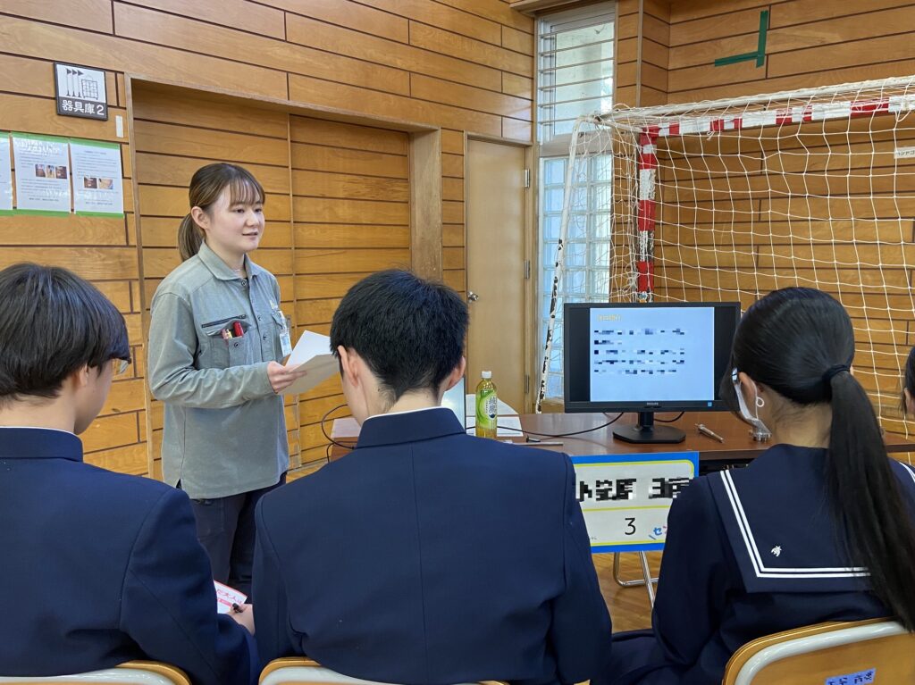 今回も滝沢南中学校出身で、品質保証部のOさんが講師を務めてくれました❢